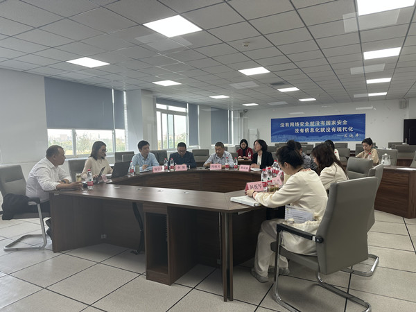 在交流会上,周益民致辞欢迎了四川旅游学院来访的领导和教师们,熊双丽介绍了此次来校调研活动的目的和重点。周益民代表学院总体介绍了过去两年来网络空间安全学科建设、资源建设、人才培养、产业学院、科技服务、产教融合建设情况及相关情况,同时也介绍了学校在四川省第一批产教融合示范项目实际运行中的一些经验总结。双方参会代表就产教融合的建设思路、运行机制、科研成果转化等工作进行了深入的研讨。