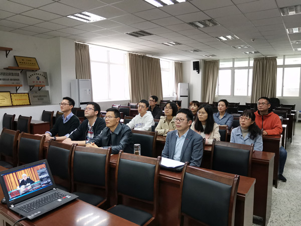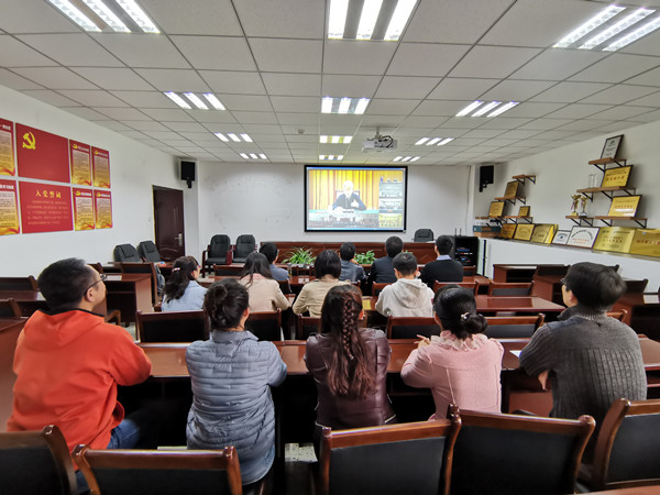 分党委立即组织学院教工党员在学院会议室观看教育部学习贯彻党的十九届五中全会精神中央宣讲团报告会视频。到场观看的学院党政领导、辅导员、党政办、教务科教师、各教研室专任教师等约20名左右。