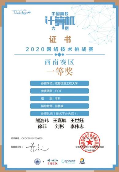 师生团队经过重重选拔,在数千只参赛队伍中脱颖而出,入围决赛,最终为学校取得了国家二等奖、三等奖、西南赛区一等奖的历史好成绩。在数月的准备过程中,不仅锻炼了学生的实际动手操作能力,也开阔了学生的眼界,深化了学生对专业的认识,提升了学生在网络技术研究与设计、开发与应用方面的创新能力。