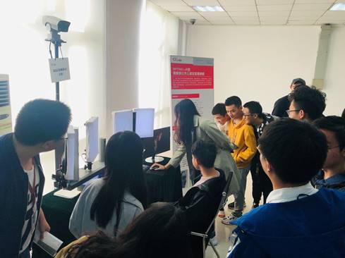 在公司的工作人员的带领下,同学们依次参观了多相机融合三维人脸快速采集系统、HFTD01-IR型高精度红外三维全脸照相机、3D-2D人脸识别系统、通道式三维人脸识别闸机、三维建库——二维动态识别展示,并亲自体验了系统运行过程。随后,公司负责人向同学讲解了三维人脸识别可视化系统的网络拓扑图、系统架构、技术栈等相关知识,同时还介绍了公司概况、泡芙短视频、办公环境,并就开发工程师、WEBUI设计师的题目与同学展开了技术交流,一一回答了同学们的各种问题。
