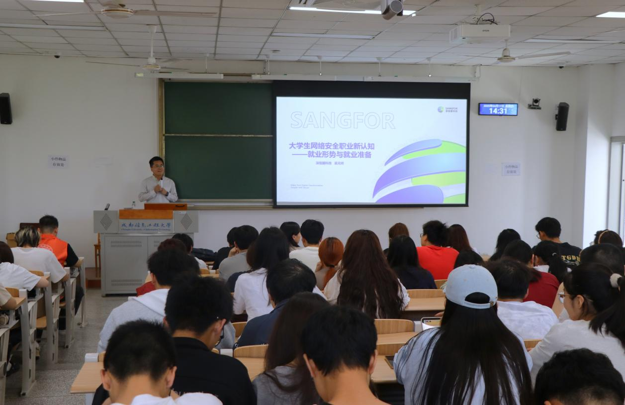 “网信素质和实践能力提升高质量人才培养专项行动”第二场网安企业高管进校讲座顺利举行。讲座特邀杭州安恒信息技术股份有限公司高级技师邓胜科、安恒信息安全服务常务副总裁周文宝、奇安信集团四川分区技术总监钱滔、深信服西南人力总监吴元祥以及华为、红帽、甲骨文相关技术的授权高级讲师陆克司担任主讲嘉宾。
