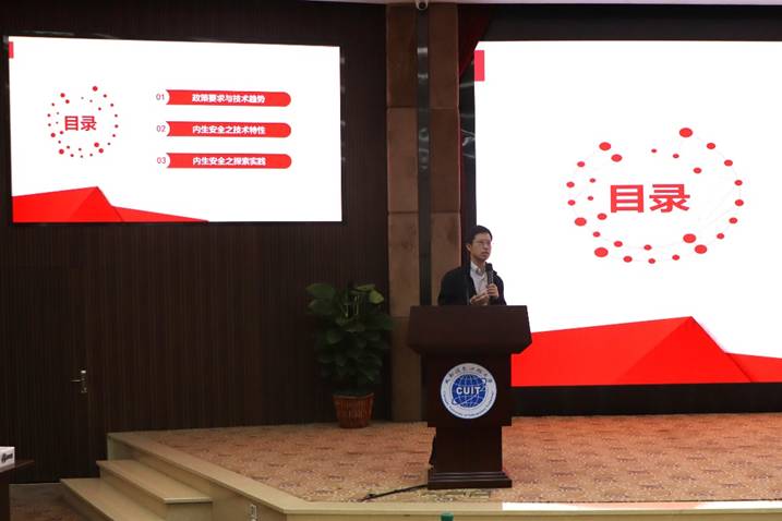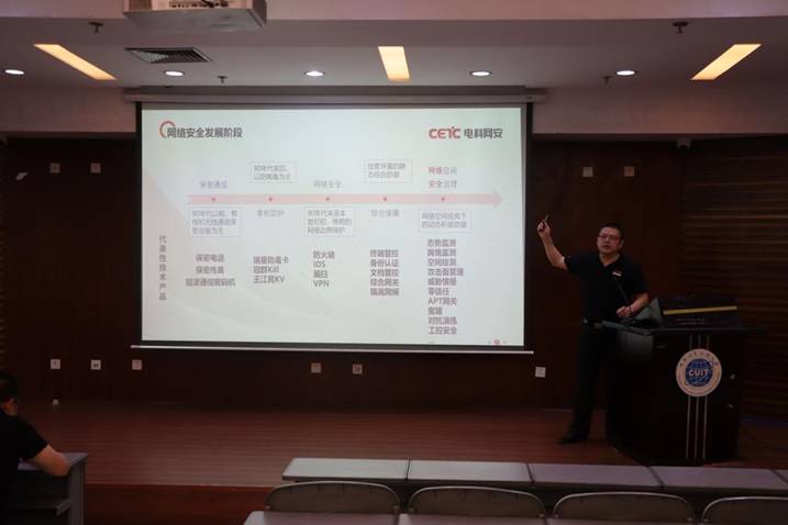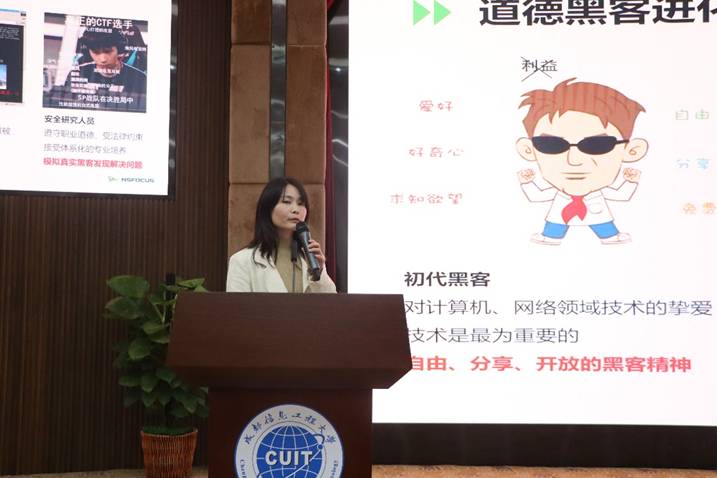 “网信素质和实践能力提升高质量人才培养专项行动”第三场网安企业高管进校讲座顺利举行。讲座特邀北京神州绿盟科技有限公司西区人力资源总监喻晓玲、中电科网络安全科技股份有限公司人力总监陈澜、成都海光集成电路设计有限公司西南大区解决方案中心技术总监周松柏、深信服科技股份有限公司教育行业安全专家赵芳、中电科网络安全科技股份有限公司网安安服党支部书记王会波、奇安信科技集团股份有限公司虎符基地副总经理李红担任主讲嘉宾。