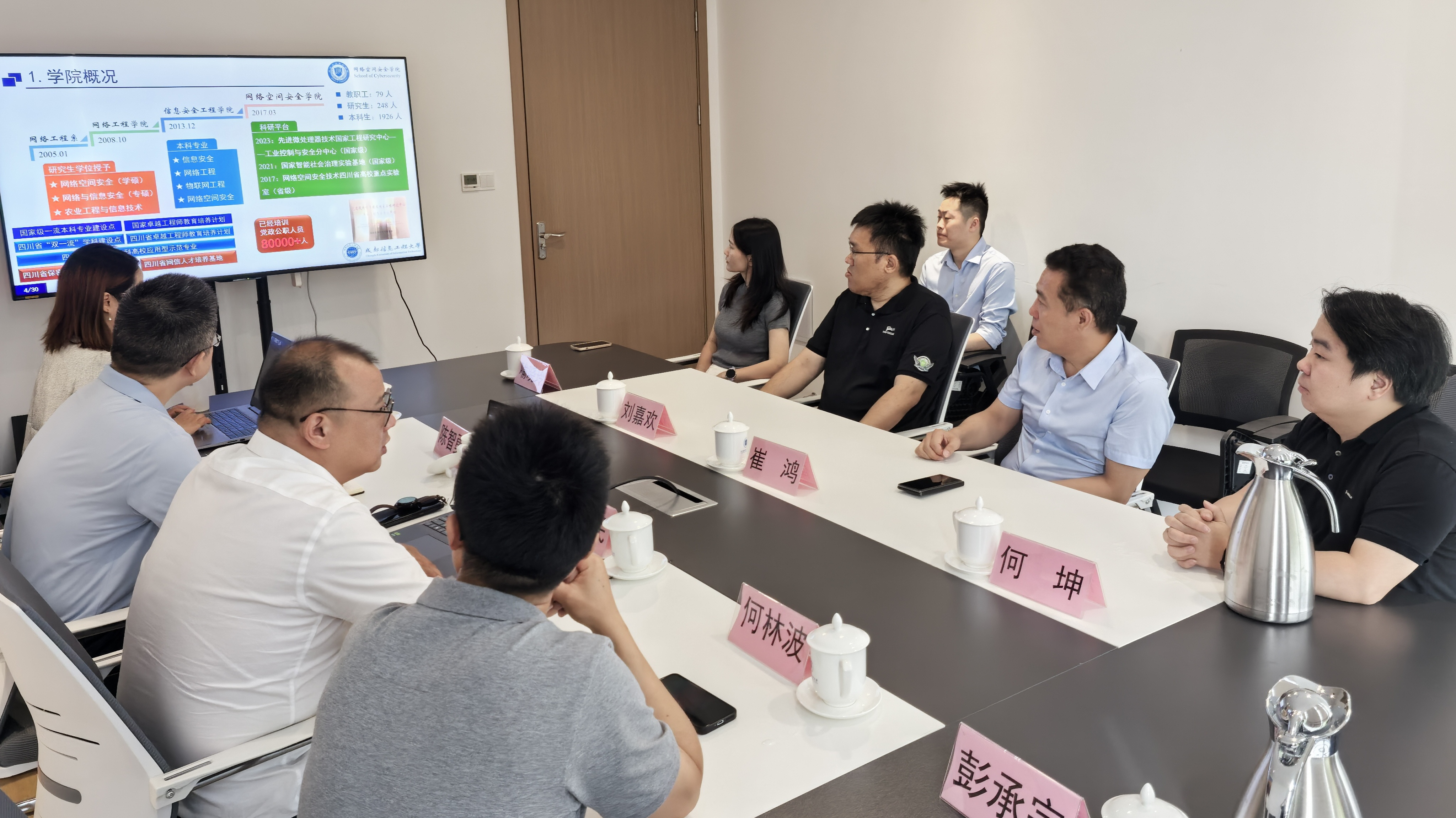 2025年8月20日,绿盟科技集团副总裁崔鸿,绿盟科技四川代表处首席代表刘嘉欢、绿盟科技云BG事业部总经理何坤、绿盟科技西区人力资源总监喻晓玲一行到访网络空间安全产业学院对双方校企合作、产教融合开展情况进行调研交流。双流新型产业学院管委会主任、网络空间安全产业学院副书记(主持党委日常工作)陈智勇,网络空间安全产业学院院长周益民、副院长何林波及相关老师参加了座谈。