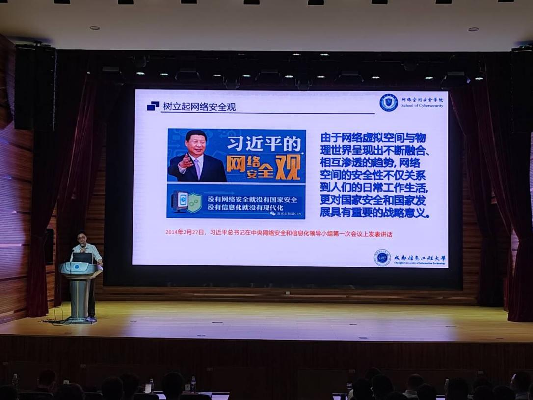学院副院长何林波副教授对新生开展专业教育,系统介绍了信息安全、网络工程及网络空间安全三个专业的建设历程、特色优势及人才培养成果。强调专业实践性强、就业前景广阔,依托多项国家级、省级质量工程项目建设,培养攻防特色鲜明的实战型人才。引用行业报告数据,指出网络安全人才缺口持续扩大、薪资待遇领先,鼓励新生树立国家安全观、明确目标、刻苦学习、勤于实践,努力成为德才兼备的网络空间安全卓越人才。