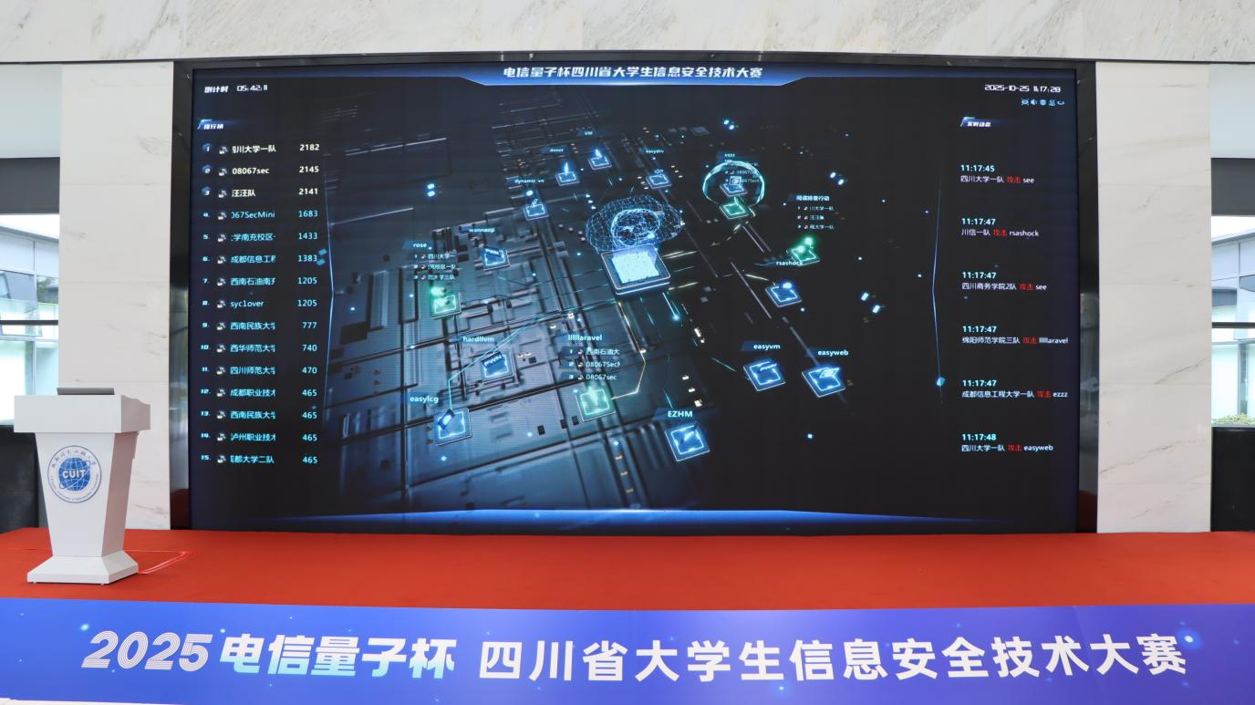 2025年10月25日—26日,“电信量子杯”第十七届四川省大学生信息安全技术大赛在澜谷科创园4—2号楼(泡芙短视频