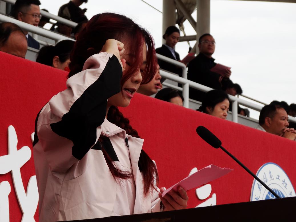 方阵身着统一服装,迈着铿锵有力的步伐整齐入场。同学们精神饱满、口号响亮,以整齐的队形与自信昂扬的青春姿态,赢得现场师生的阵阵掌声。升旗仪式结束后,网络工程244班李馨忆作为运动员代表登台宣誓,承诺将在赛场上尊重规则、奋勇拼搏。