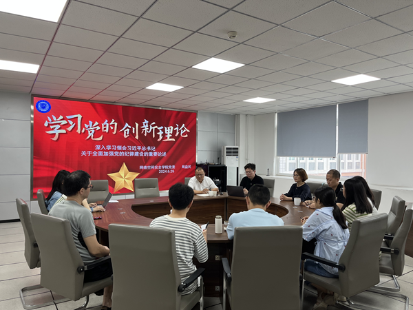 院长周益民为信安网安教工党支部讲授专题党课,重点讲授学习运用党的创新理论的收获体会,并结合正在开展的党纪学习教育,将深入学习领会习近平总书记关于全面加强党的纪律建设的重要论述纳入其中。信安网安教工党支部全体成员参加了学习。