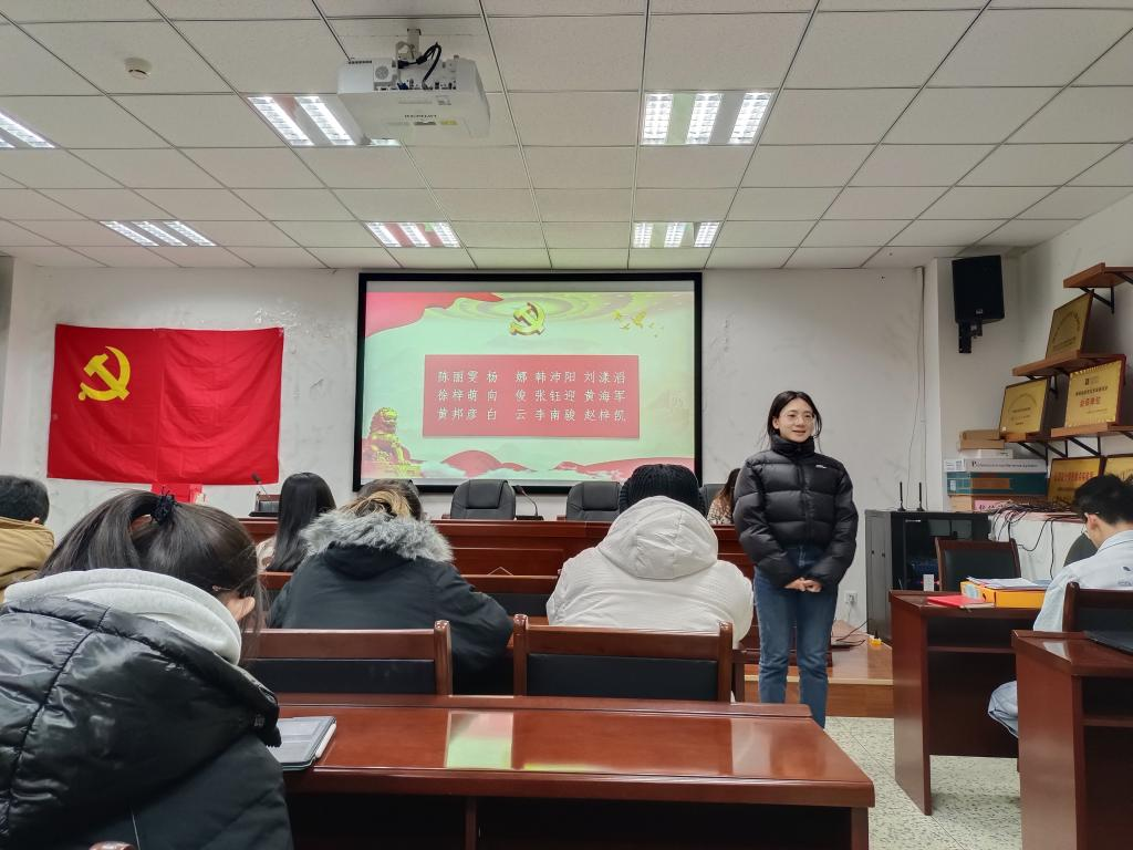 会议的最后,支部书记贾茜老师对十二名转正同志的表现表示肯定,并希望所有党员在学习、生活、工作等各方面更加严格要求自己,改正缺点、发扬优点,树立良好的模范带头作用,争做优秀党员,要始终牢记初心使命,对党忠诚,在新时代的赶考之路上跑出当代青年最好的成绩。