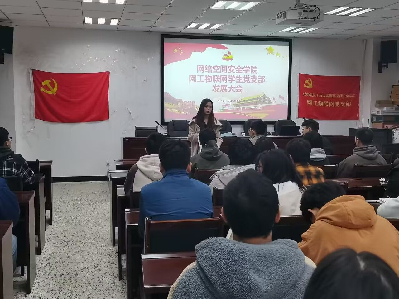 网工物联网学生党支部2023年秋季预备党员发展大会在双中心A402顺利召开。参加本次会议的有网工物联网学生党支部书记何佩遥、全体学生党员和15名发展对象。本次会议由党支部书记何佩遥主持。