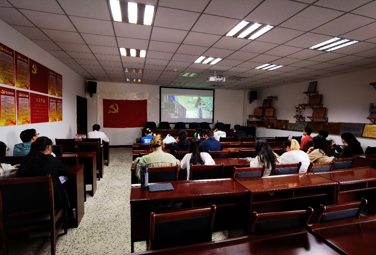 会上,贾茜老师组织了全体与会党员同志观看了由获得“最美奋斗者”、“全国脱贫攻坚奖”、“全国劳动模范”、“全国三八红旗手标兵”,并被誉为“当代女愚公”的贵州黔南麻怀村党支部书记邓迎香带领村民十几年来坚持不懈最终挖通大山的事件为原型改编而成的电影《一山之隔》。