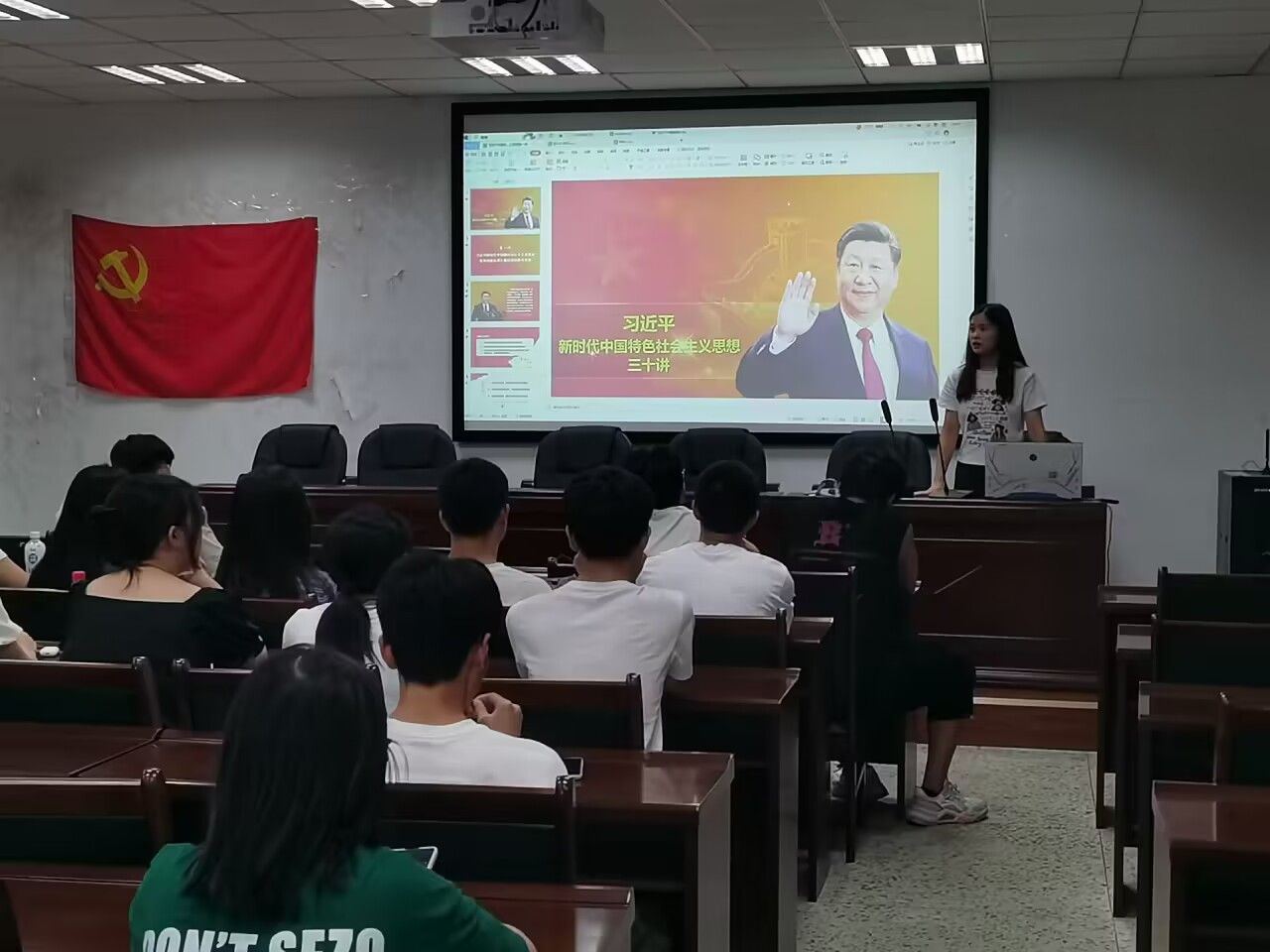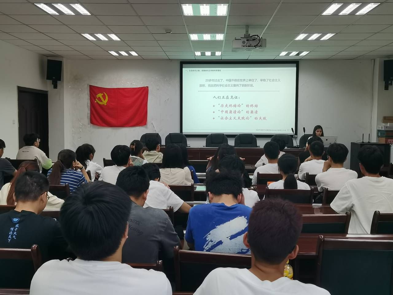 网工物联网学生党支部书记何佩遥在信达楼A402讲授学习贯彻习近平新时代中国特色社会主义思想主题教育专题党课,支部全体学生党员参加了此次党课学习。