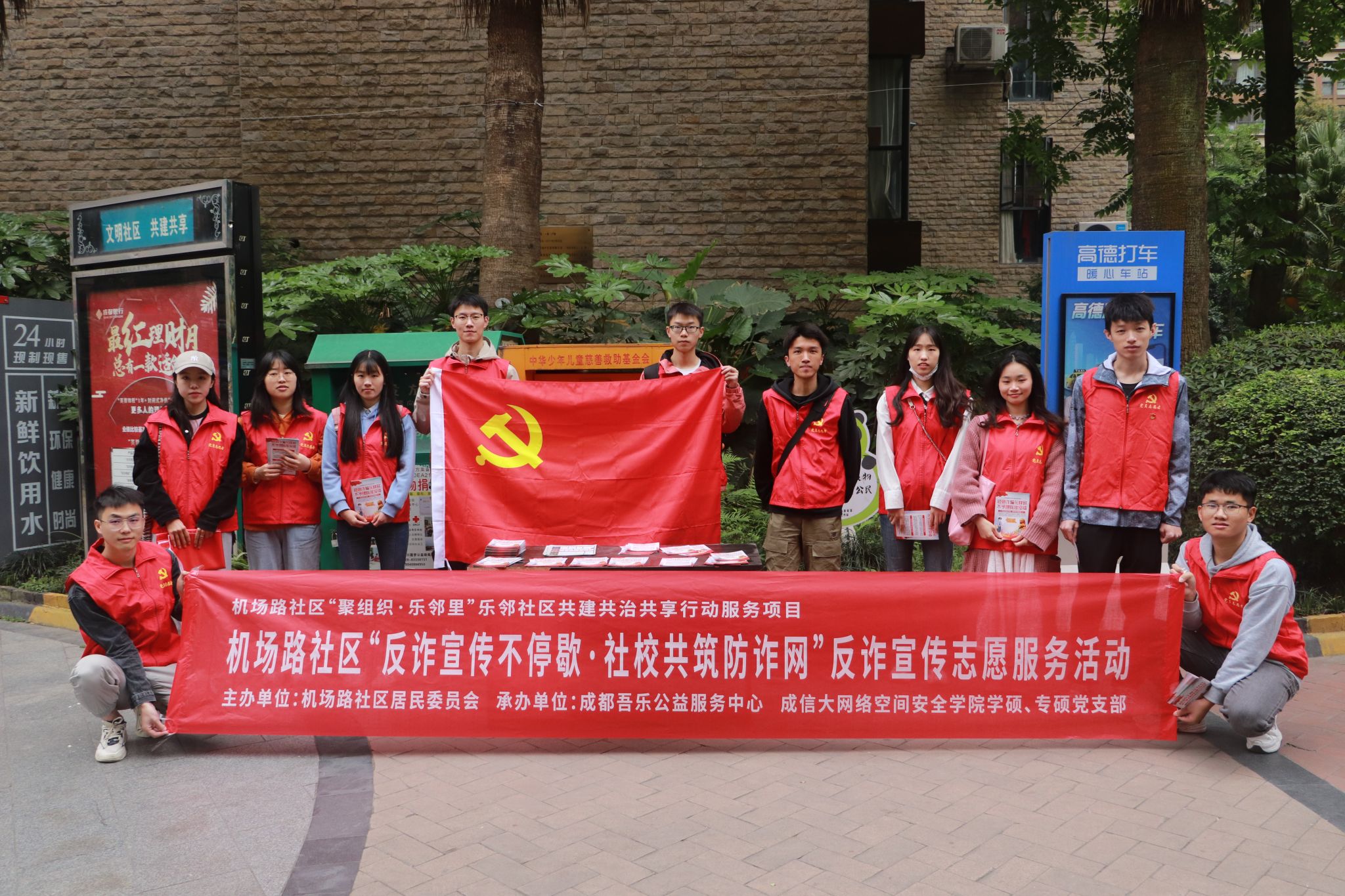 学硕、专硕党支部于4月24日上午赴机场路社区开展了“反诈宣传不停歇.社校共筑防诈网”反诈宣传志愿服务活动。向社区居民宣传反诈意识和能力,保障人民群众财产安全,预防和减少电信诈骗案件的发生。