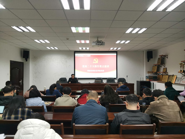 党委召开党员大会专题学习党的二十大精神。会议由学院党委书记张仕斌主持,他带领全体党员认真学习了党的二十大精神。
