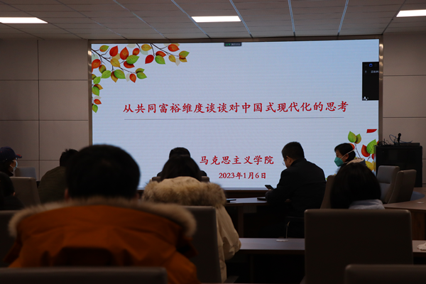 党委书记张仕斌指出中国式现代化需要全体国人脚踏实地地共同奋斗,最终实现共同富裕;希望学院全体党员同志,围绕学院中心工作,继续发挥共产党员的先锋模范作用,脚踏实地、担当作为、开拓创新,确保党的二十大精神落地见效。