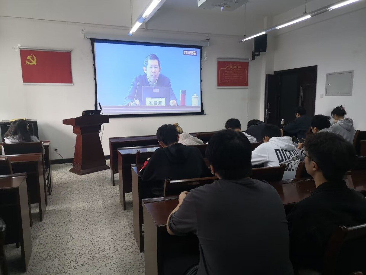 学生党支部共计60名党员于双中心A402和c405同时收看《2022年四川省科学道德和学风建设宣讲教育报告会》直播。