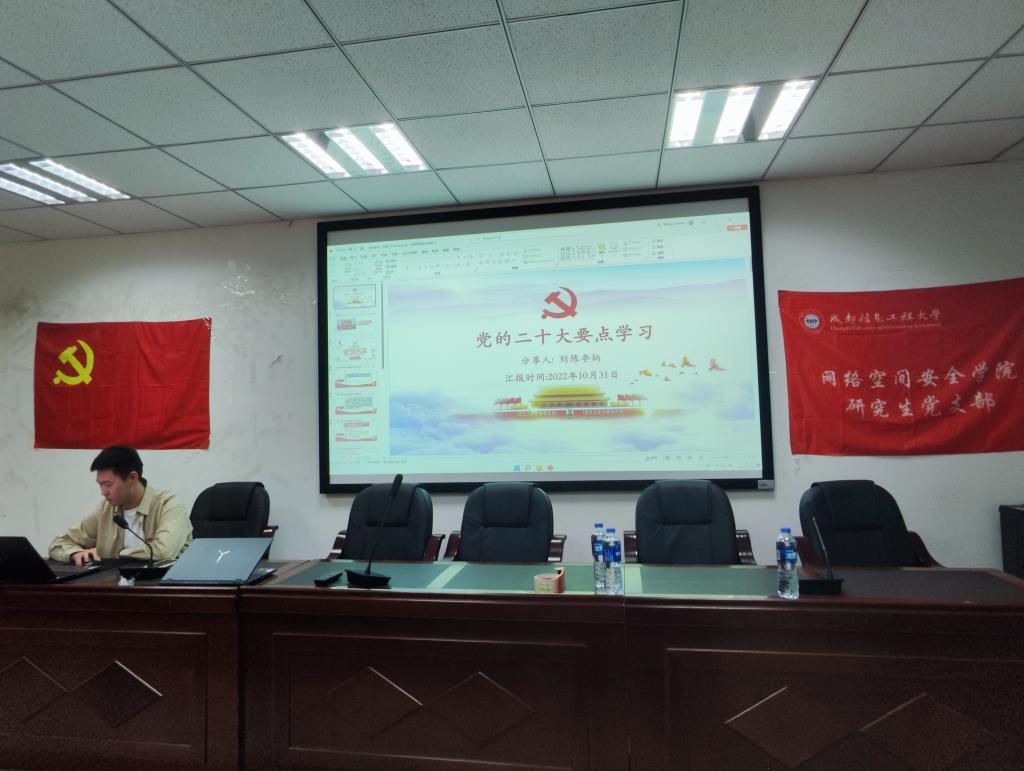 活动集中学习了《习近平同志在中国共产党第二十次全国代表大会上代表十九届中央委员会向大会作的报告》和《习近平同志在中国共产党第二十次全国代表大会闭幕会上的重要讲话精神》。接着三位支部党员以“学习二十大•奋进新征程”为主题分享了自己学习党的二十大的心得。