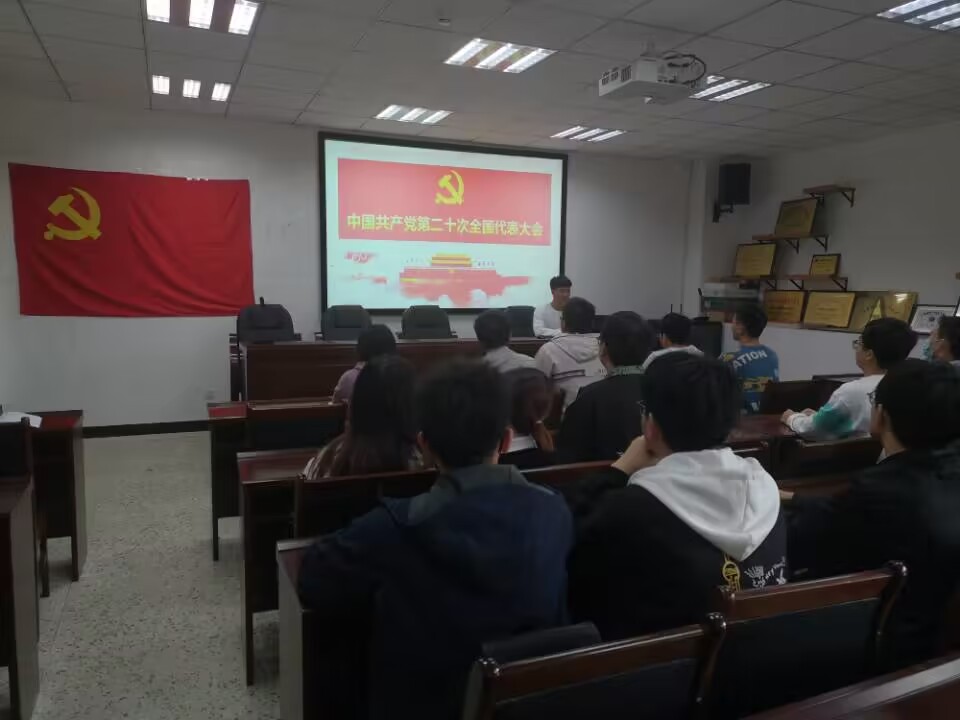 网工物联网学生党支部于A402会议室开展以学习中国共产党第二十次全国代表大会精神为主题的党组织生活会,由陈乾坤同志带领大家进行学习。