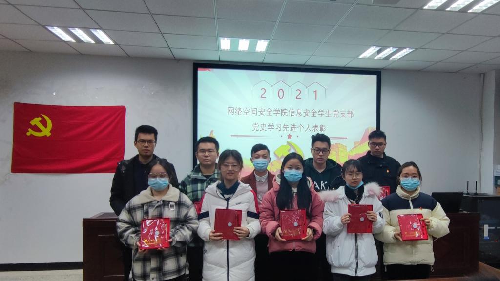 支部书记姜艳老师总结了2021年我支部党史学习教育的情况:通过理论学习、学生党员微党课活动、党史知识竞赛、观看爱国主义电影、优秀党员分享会等各种形式加强党史学习,2021年,支部党员学习积极性高涨,涌现出一批党史学习先进个人。随后对以上同志进行了表彰。