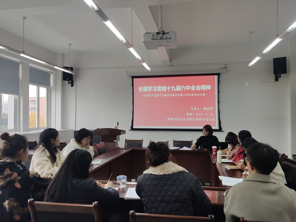 行政机关党支部在信达楼C405上了一节党课,主题为:全面学习贯彻十九届六中全会精神。