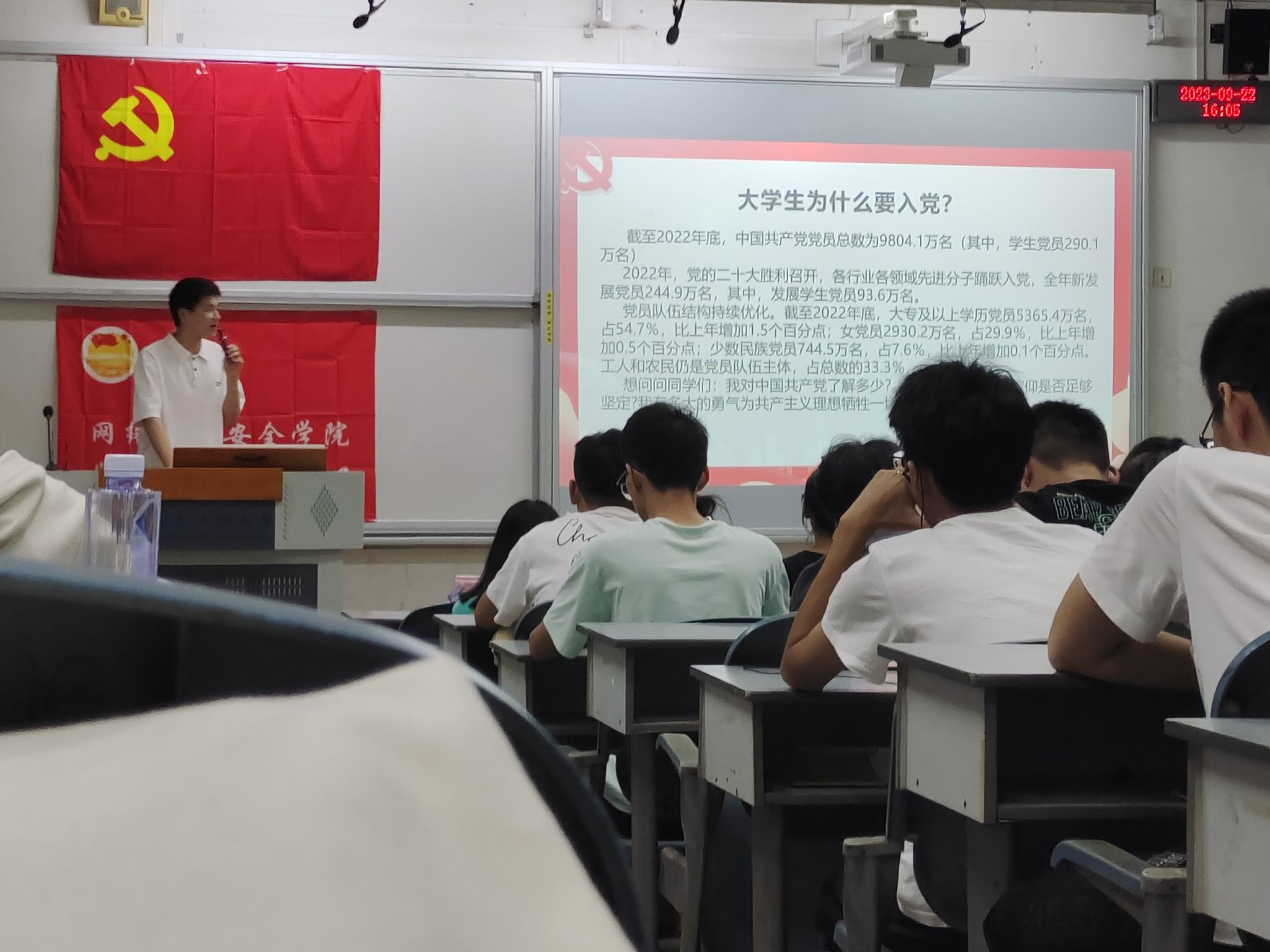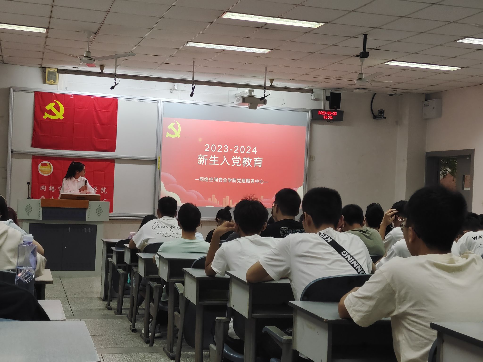 2023年9月22日下午, 新生入党教育活动在H1202教室成功举办。本次活动由网络空间学院党委主办,泡芙短视频