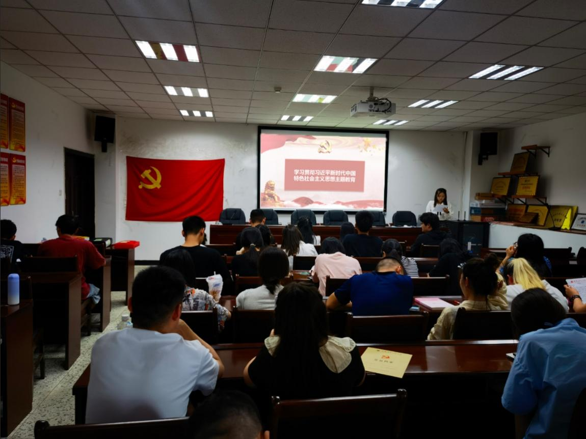 会上,支部书记贾茜组织支部党员进行了红色书籍的阅读,对习近平新时代中国特色社会主义思想的重大意义、科学体系、精髓要义、实践要求进行交流学习。接着,支部全体与会党员观看了习总书记在“学习贯彻习近平新时代中国特色社会主义思想主题教育工作会议”上的讲话。习总书记在会上指出,这次主题教育,要在推动学习贯彻新时代中国特色社会主义思想走深走实上下功夫,教育引导党员、干部从思想上正本清源、固本培元,不断提高政治判断力、政治领悟力、政治执行力,增强“四个意识”、坚定“四个自信”、做到“两个维护”,始终在思想上政治上行动上同党中央保持高度一致,做到心往一处想、劲往一处使,共同把党锻造成一块攻无不克、战无不胜的坚硬钢铁。