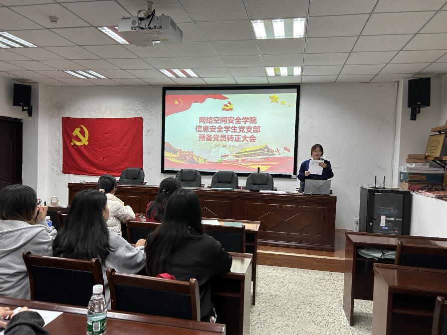 2023年3月9日,信安网安学生党支部于双中心A402会议室召开预备党员转正大会。会议由组织委员仝一涵主持,全体党员参加。