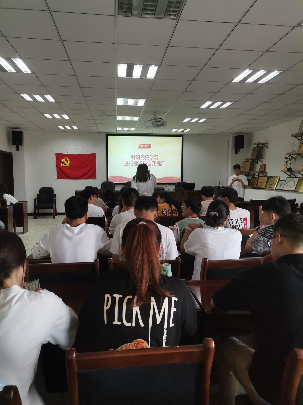 组织生活会上,全体党员针对党史学习中自身存在的问题与不足,逐一进行批评与自我批评。接着,支部全体党员围绕“习近平总书记在庆祝中国共产党成立 100 周年大会上的重要讲话”、“习近平总书记在党史学习教育动员大会上的重要讲话”分享学习心得,大家深刻回顾过去100年以来中国共产党带领中国人民进行艰苦奋斗所取得的一系列伟大成就,作为学生党员应该有志气、骨气、底气,不负时代,不负韶华,不负党和人民的殷切期望!最后,支部书记张琴针对本学期学生党支部开展活动情况,学生党员中普遍存在的问题、党史学习中存在的差距与不足,学生党员先锋模范作用发挥情况等方面进行分析总结,并对下一学年党支部工作进行规划。