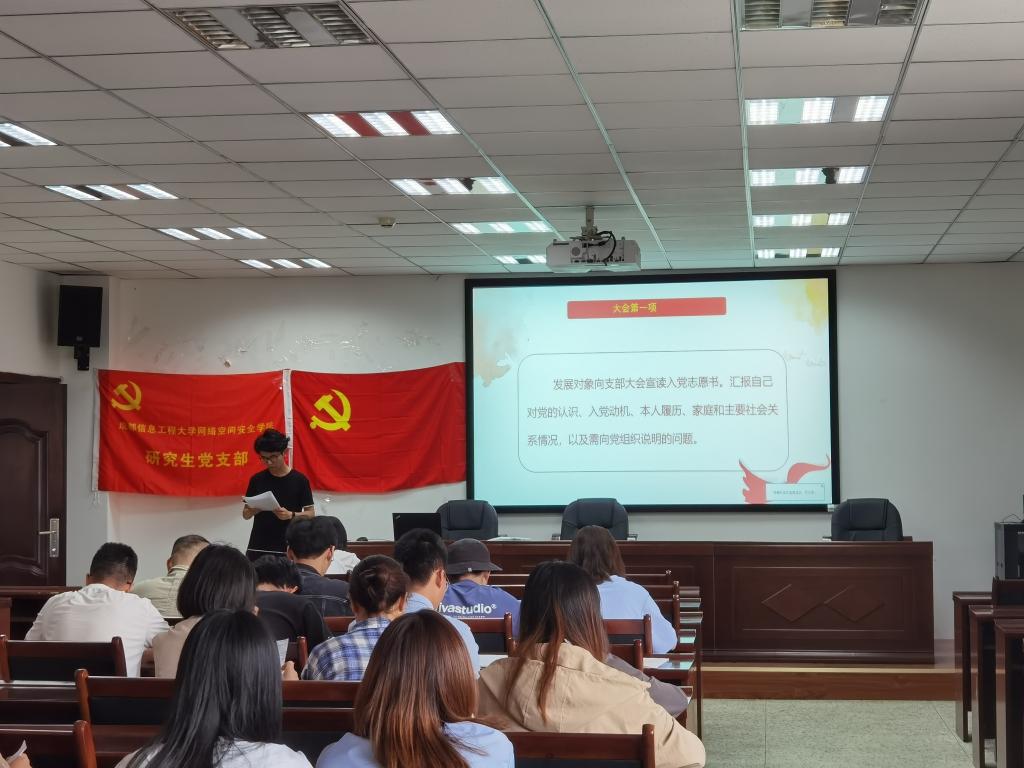 研究生党支部在双中心A405召开新党员发展大会暨新中国史学习会。研究生党支部书记何佩遥、支部党员同学和此次新发展对象参加了此次会议,会议由何佩遥主持。