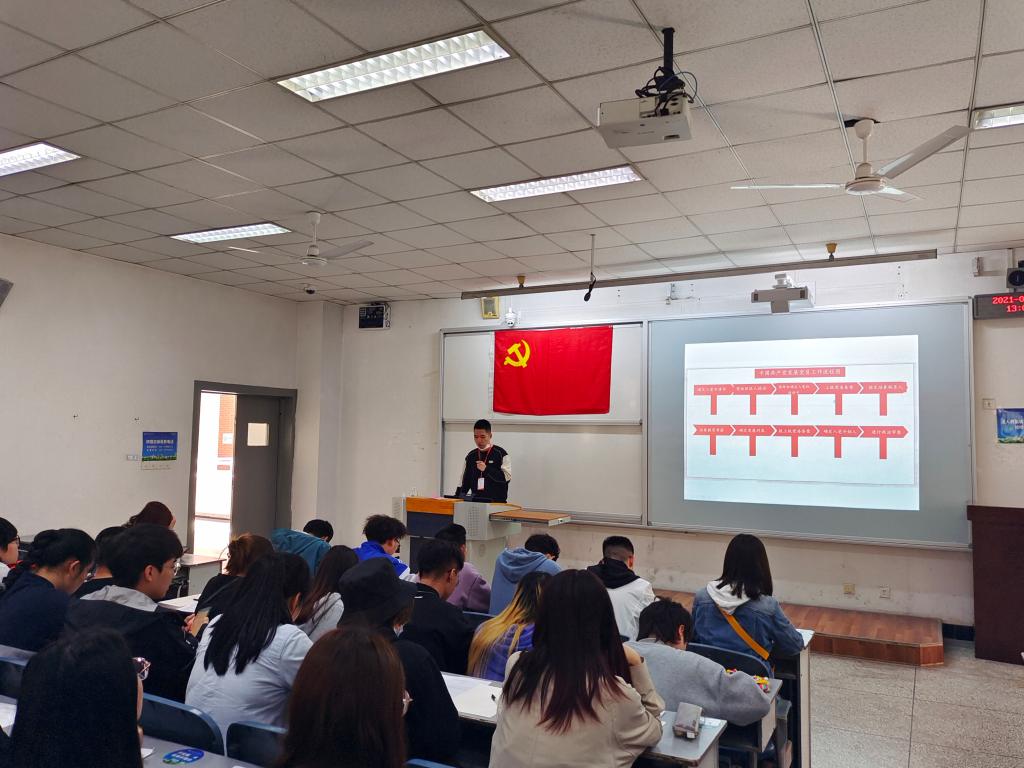 学生党建服务中心——青年先锋队在教学楼1102开展了2021年春季入党积极分子培训会。来自网安学院80名不同年级的入党积极分子们参加了本次的会议,由青年先锋队负责人李俊辰和皮璐同志来负责讲解。