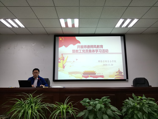 组织全体教师开展师德师风教育暨教工党员集体学习活动。学习活动由学院党委书记张仕斌主持。