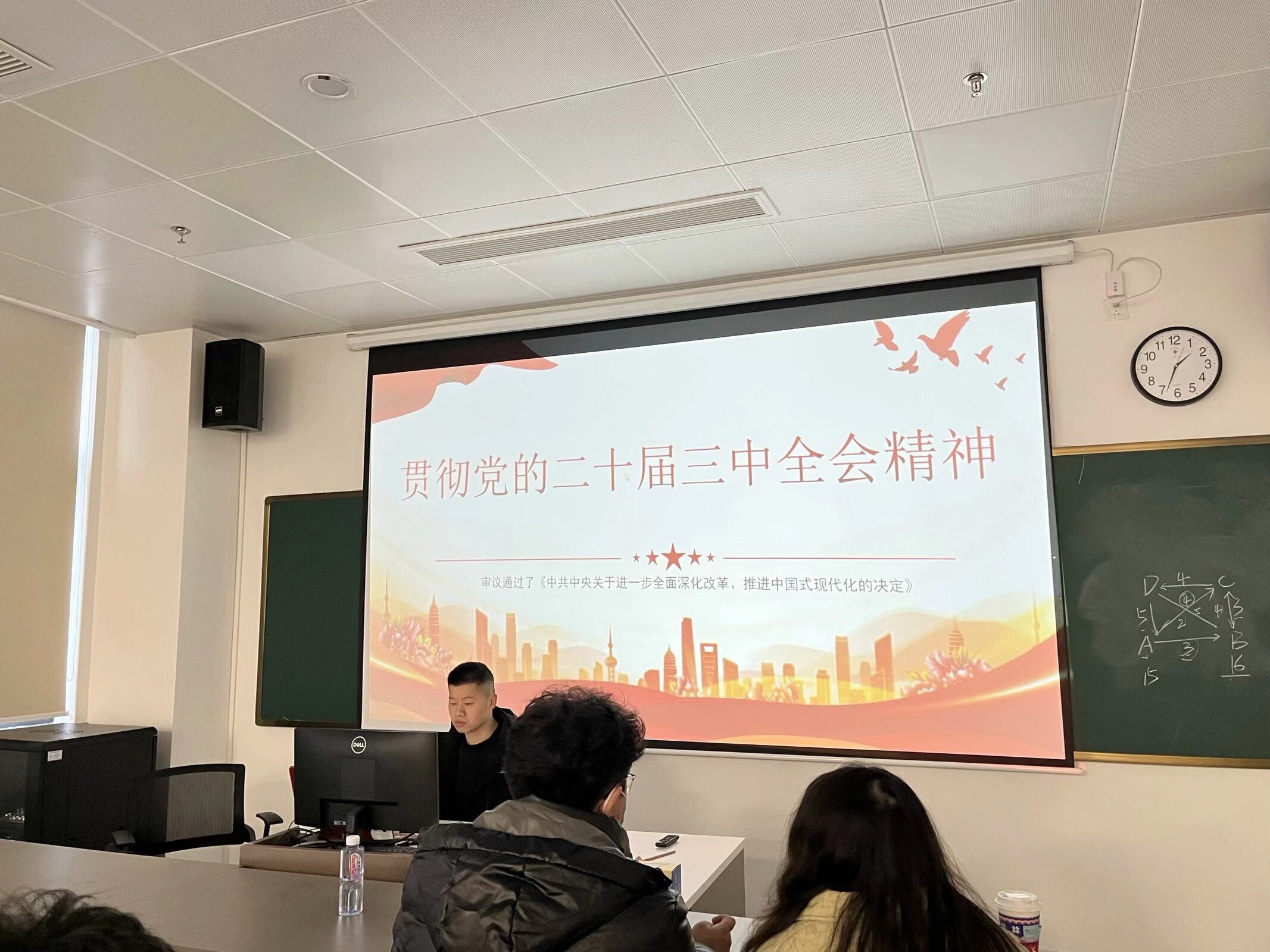 会议第一项,支部全体党员开展学习党的二十届三中全会精神和习近平同志《论教育》,谭洲屹、冯甲两位同志分享了自己的心得。谭洲屹同志从“党的二十届三中全会精神”的“一个总目标”、“六个坚持”和“七个聚焦”方面进行了深入学习。党的二十届三中全会对进一步全面深化改革、推进中国式现代化作出战略部署,锚定“继续完善和发展中国特色社会主义制度,推进国家治理体系和治理能力现代化”这个进一步全面深化改革的总目标,在全面建设社会主义现代化国家新征程上矗立起新的里程碑。与会同志一致表示,要深入学习领会党的二十届三中全会精神,既当改革促进派、又当改革实干家,发扬钉钉子精神,齐心协力抓好《决定》贯彻落实,把进一步全面深化改革的战略部署转化为推进中国式现代化的强大力量。