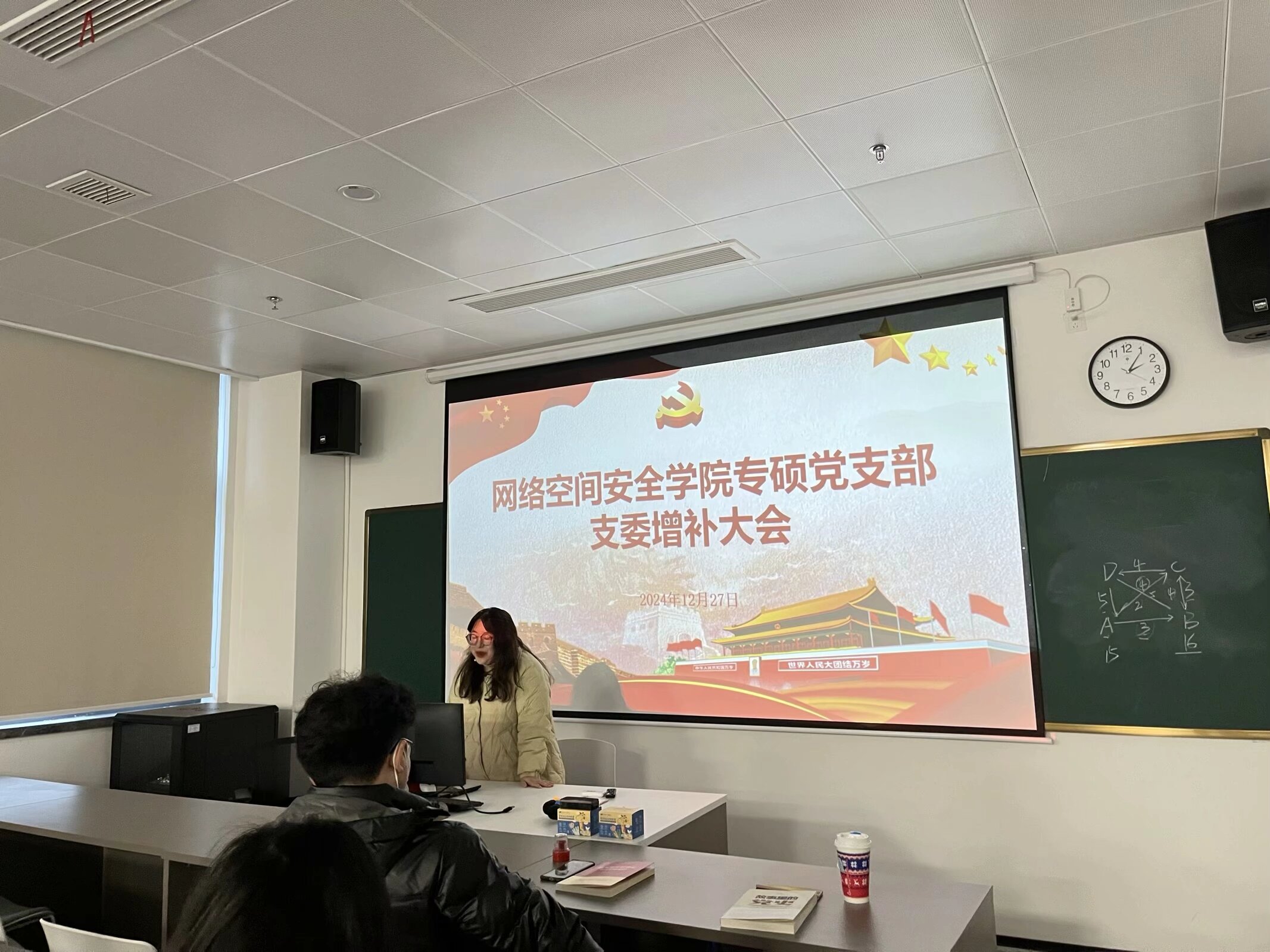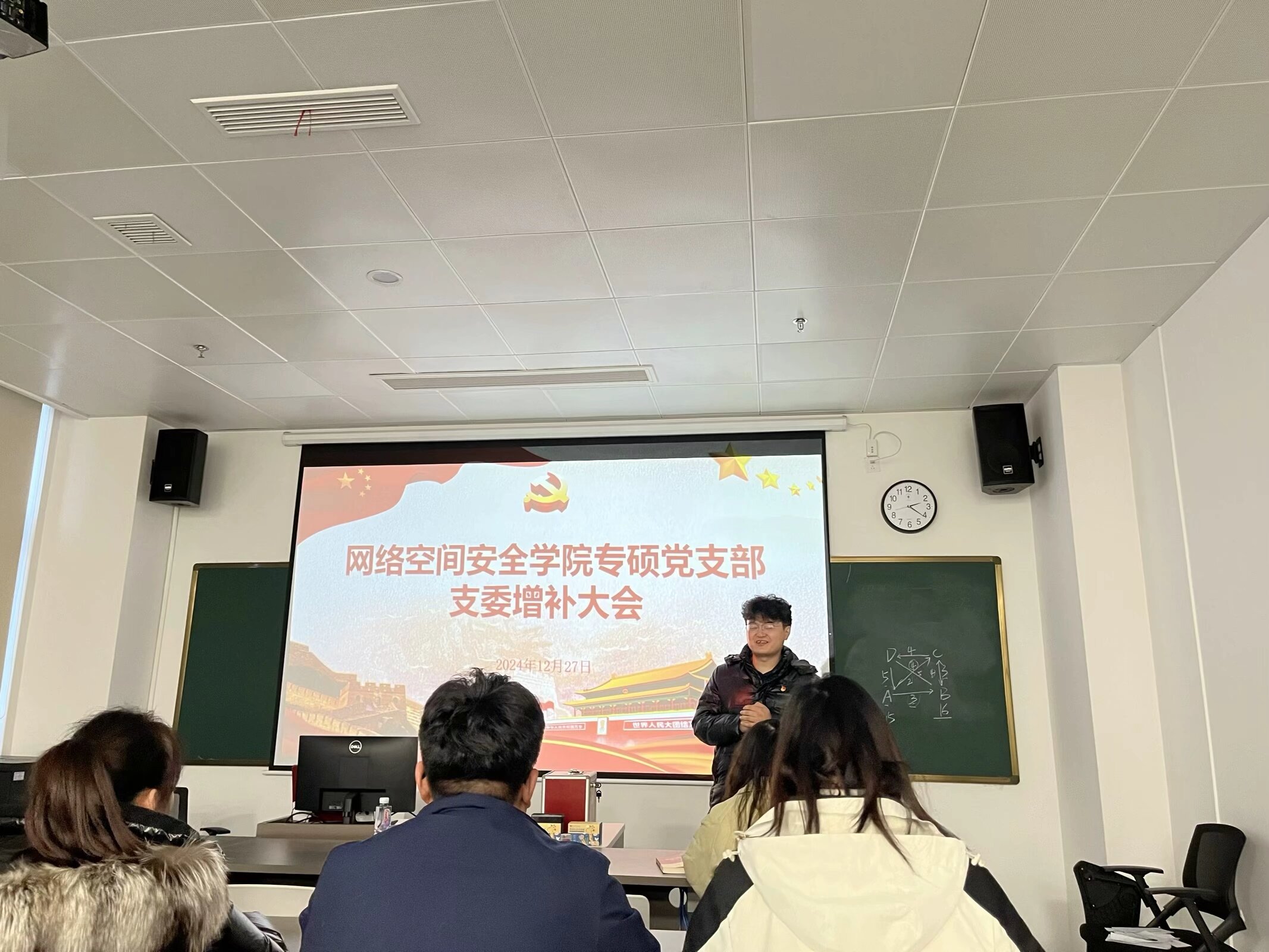 专硕党支部在芯谷校区4-2栋301会议室召开支部大会。专硕党支部26名党员和10名预备党员参加了本次支部大会,本次会议由专硕党支部组织委员唐梅主持。