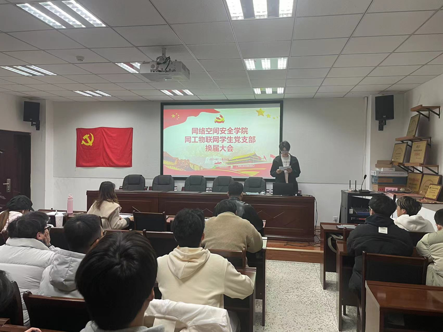 党委批准,2024年11月29日下午16:00,网工物联网学生党支部于信达楼A402会议室开展支部委员换届选举大会。会议由网工物联网学生党支部副书记王浩宇同志主持。