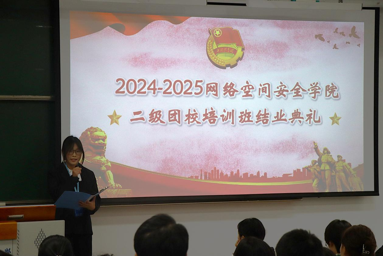 2024年11月20日晚19:00,网络空间安全学院二级团校结业典礼在H4112教室顺利举行。学院团委书记夏焜,入团积极分子以及学生干部参加了本次结业典礼。典礼由学院组织部干事赵静雯主持。
