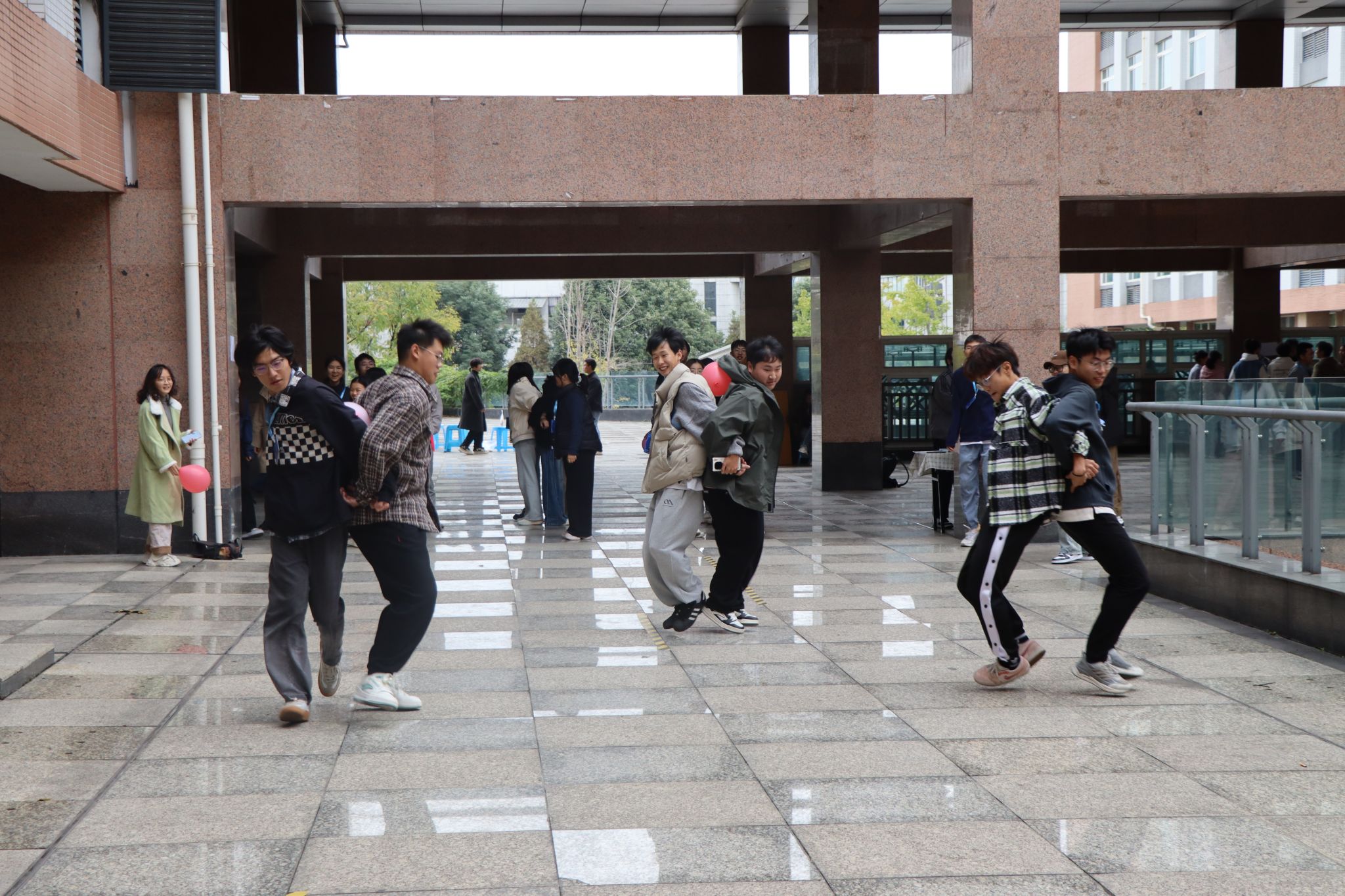 在双中心二楼平台举办团委、学生会素质拓展活动,活动由学院文化艺术部承办。