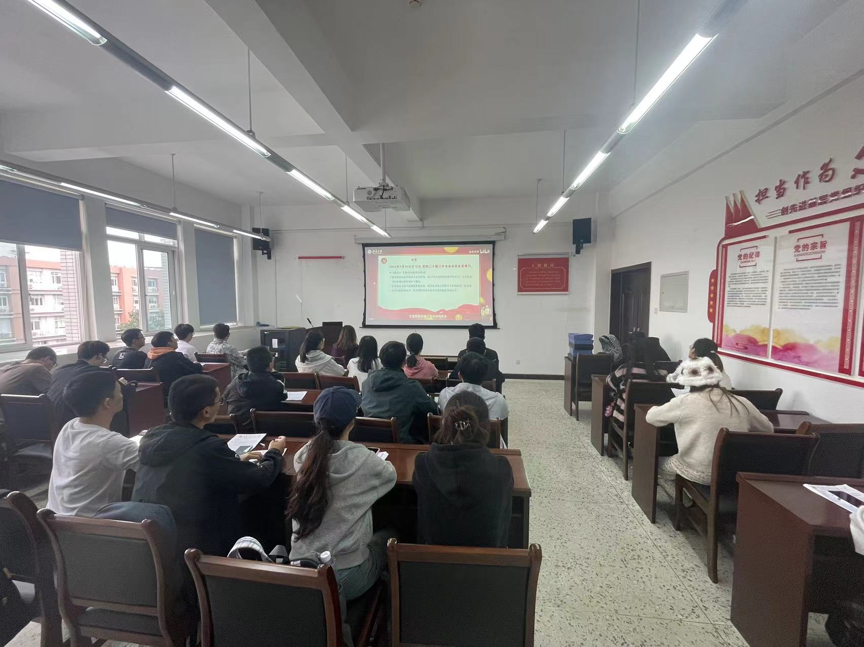 会议伊始,党支部副书记王浩宇带领全体党员观看了北大学者解读党的二十三届三中全会的视频,该片深入阐释了会议的内容、内涵以及所传达的精神和作用。通过观看学习,党员们对党的使命和任务有了更加深刻的认识。