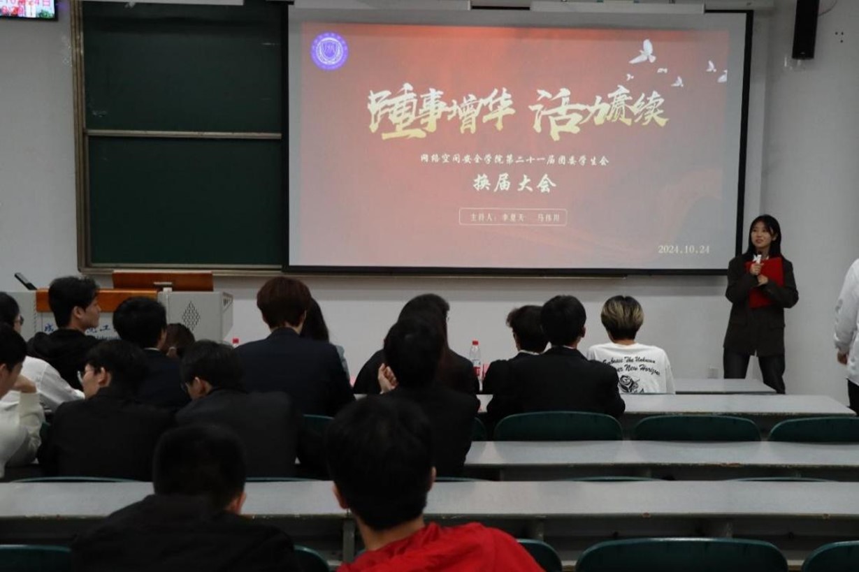 在H4112举行团委学生会换届大会。大会由秘书处李夏天和马伟川主持,学院团委书记夏焜和辅导员韩阳出席了会议。