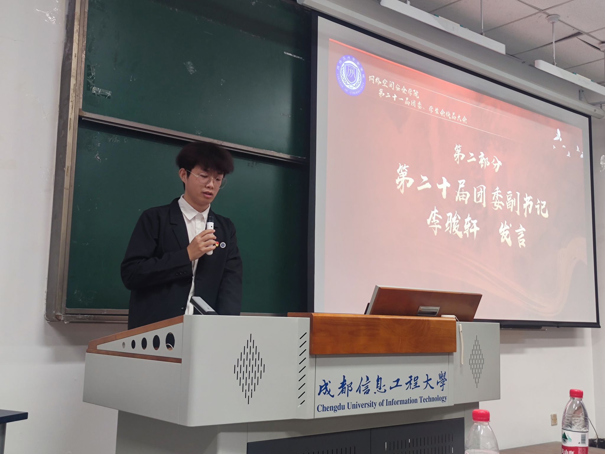 会上,第二十届团委副书记李骏轩首先做了工作总结报告。他回顾了过去一年中,团委学生会在思想引领、校园文化、社会实践、志愿服务等方面取得的显著成绩,并对所有成员的辛勤付出表示了衷心感谢。同时,他也对新成员提出了希望,鼓励他们继续发愤学习、成长成才,展现出青春心向党建功新时代的活力。