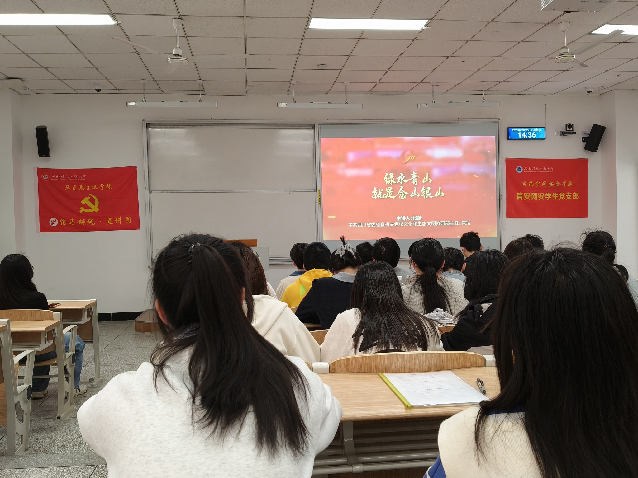 会议第二阶段,全体党员集体学习中共四川省委省直机关党校张蔚教授主讲的《绿水青山就是金山银山》视频课程。张蔚教授从习近平生态文明思想的生成逻辑、理论架构、实践路径三个维度,深入剖析了生态保护与经济发展协同共生的辩证规律,着重解读了“五位一体”总体布局中生态文明建设的制度创新体系。