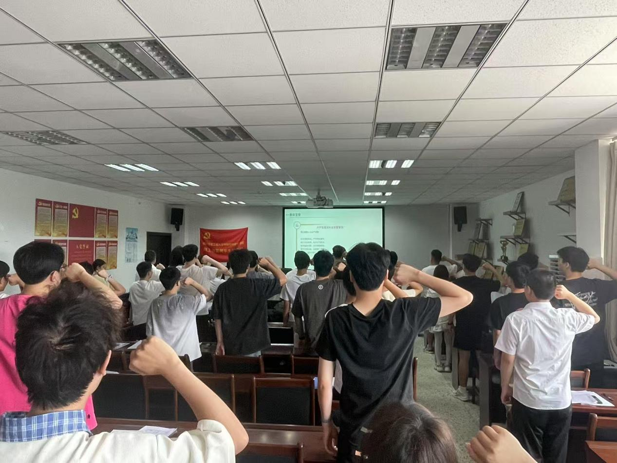 最后,全体同学举起右手,庄严宣誓遵守职场廉洁准则,在今后的职业道路中,不断进步。