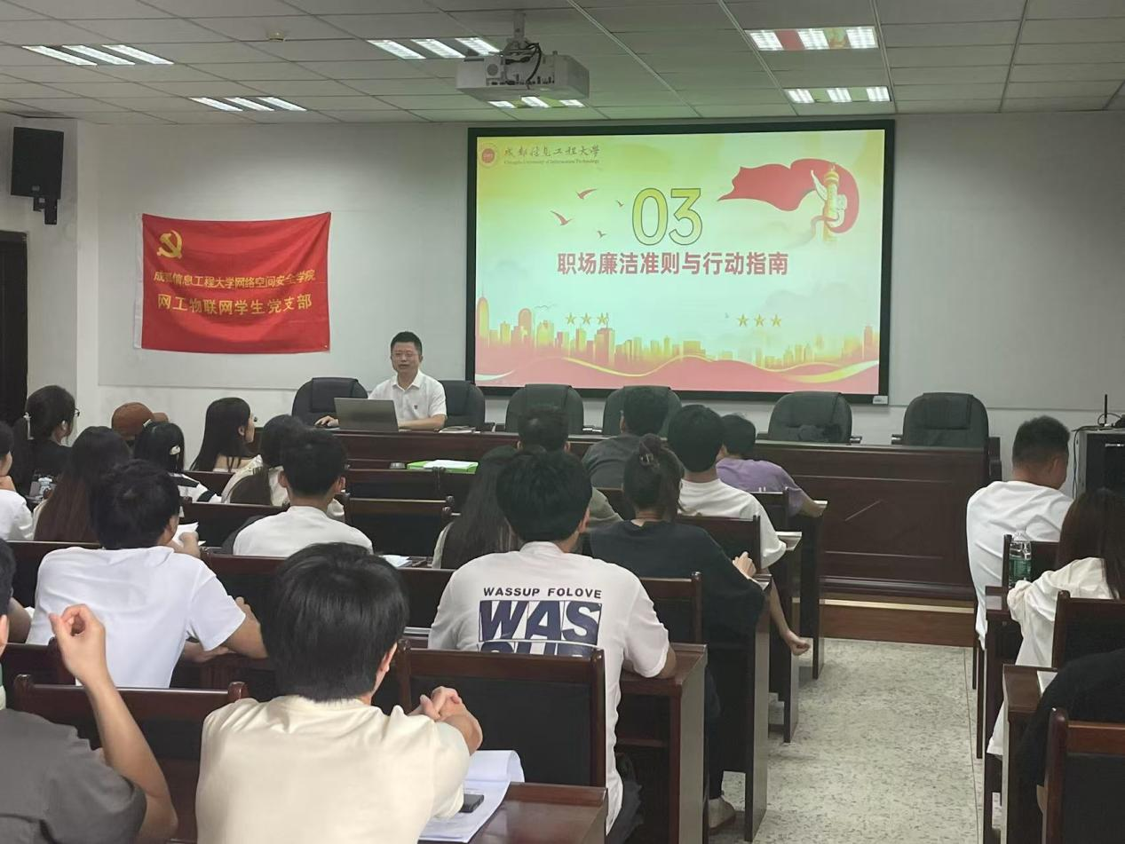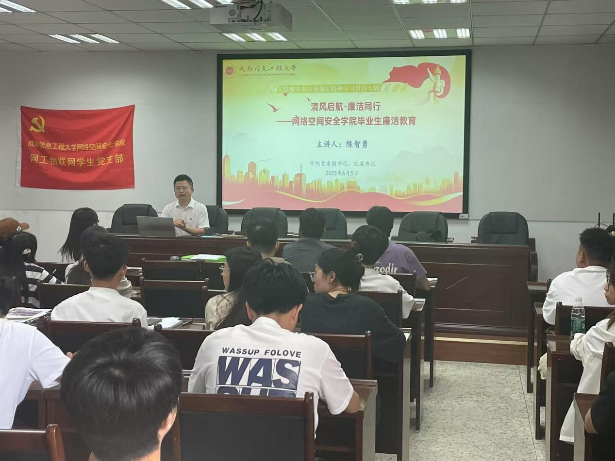 在A402教室举办了“清风启航·廉洁同行”毕业生廉洁教育暨深入贯彻中央八项规定精神学习教育专题党课,主讲人是学院党委副书记、纪委书记陈智勇。学院部分学生党员和毕业生参会。