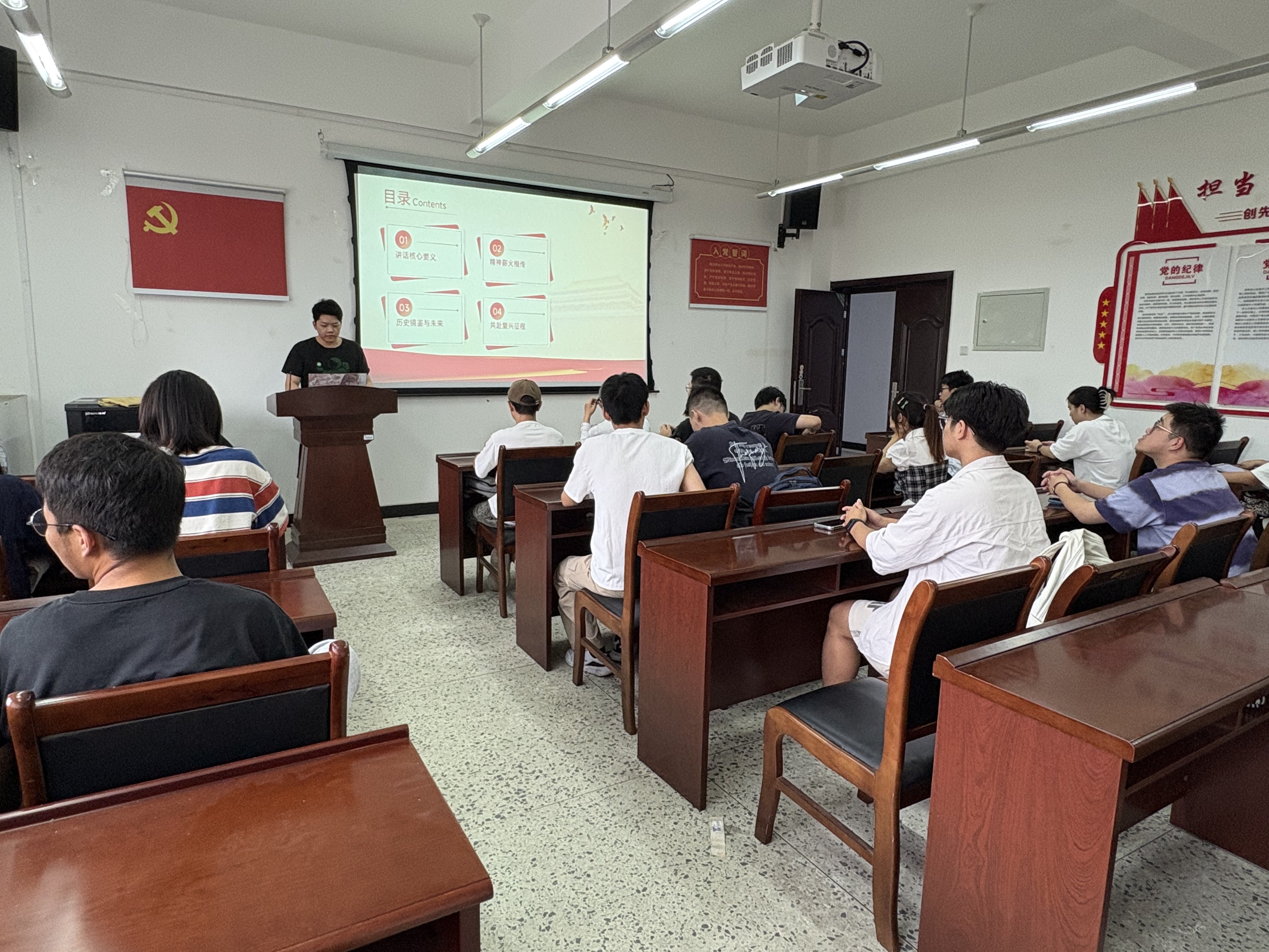 最后,支部书记张琴强调,全体党员应持续深化对重要讲话精神的学习,准确把握抗战精神的核心要义与实践要求,不断提升政治觉悟和思想水平,立足专业、奋发有为,以实际行动践行“请党放心、强国有我”的青春誓言,努力成长为担当民族复兴大任的时代新人。
