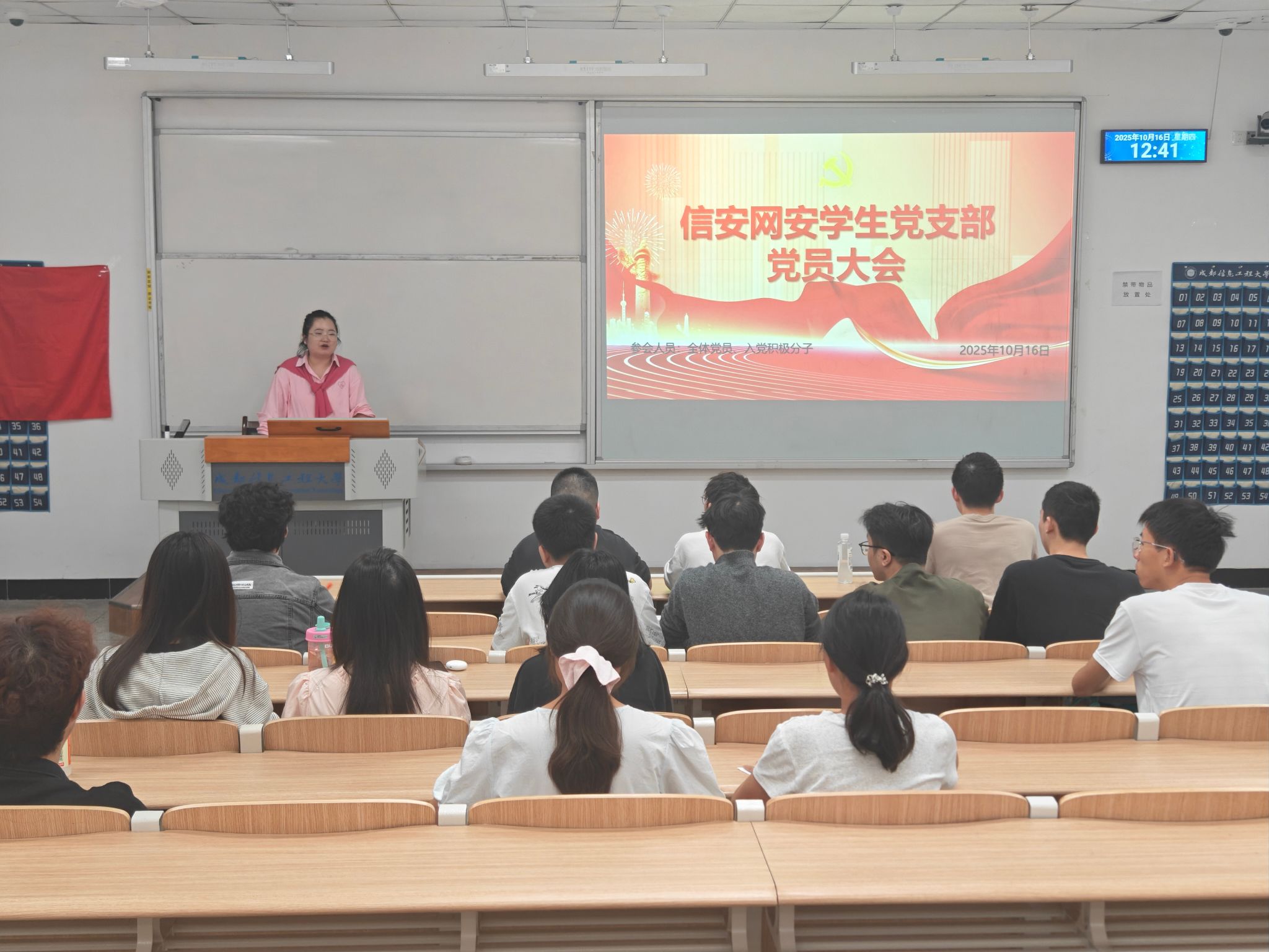 信安网安学生党支部在H1102教室召开党员大会,并举行“弘扬伟大抗战精神”主题党日活动。会议由党支部书记韩阳主持,全体党员及入党积极分子参加。
