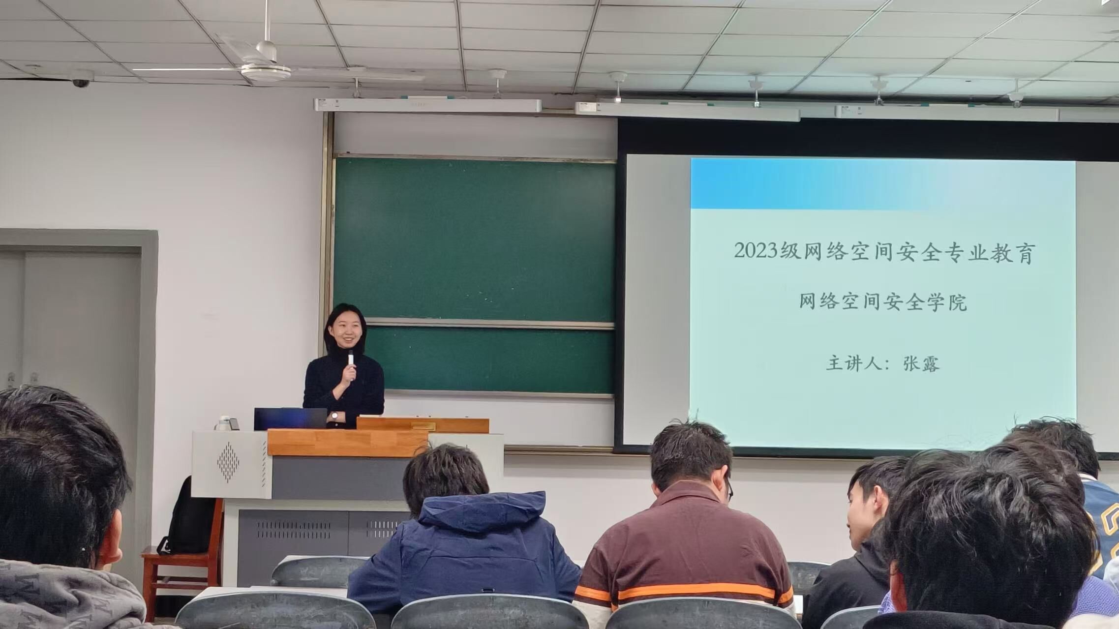 在航空港校区成功举办了2023级网络空间安全专业教育讲座。本次讲座面向全体2023级网络空间安全专业学生,由网络空间安全专业教研室教师张露主讲。