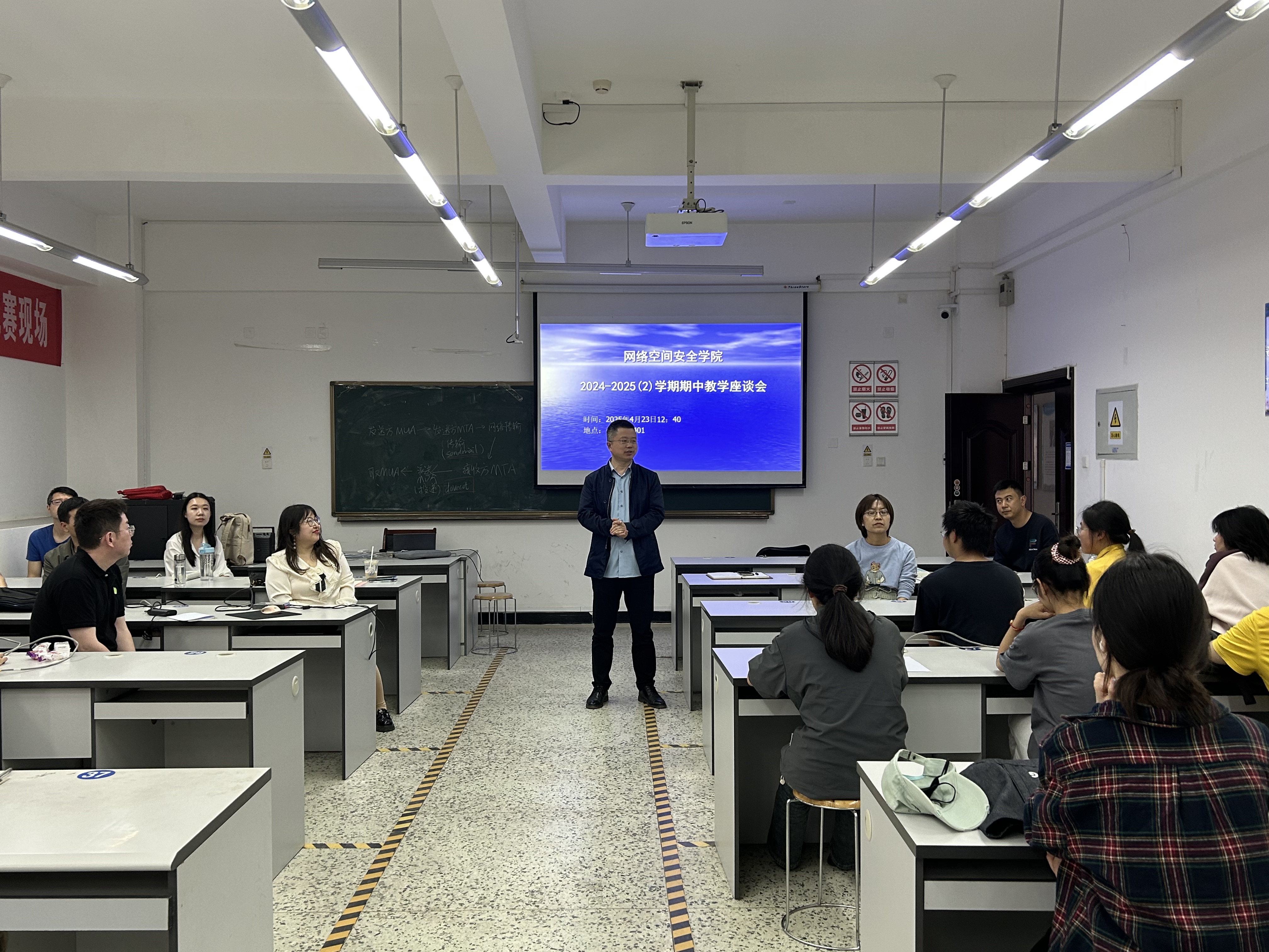 召开“2024-2025(2)学期中本科教学座谈会”。座谈会分专业进行,分别在双中心A402(网络工程专业)、双中心B401(信息安全专业)、双中心C405(物联网工程专业、网络空间安全专业)进行。