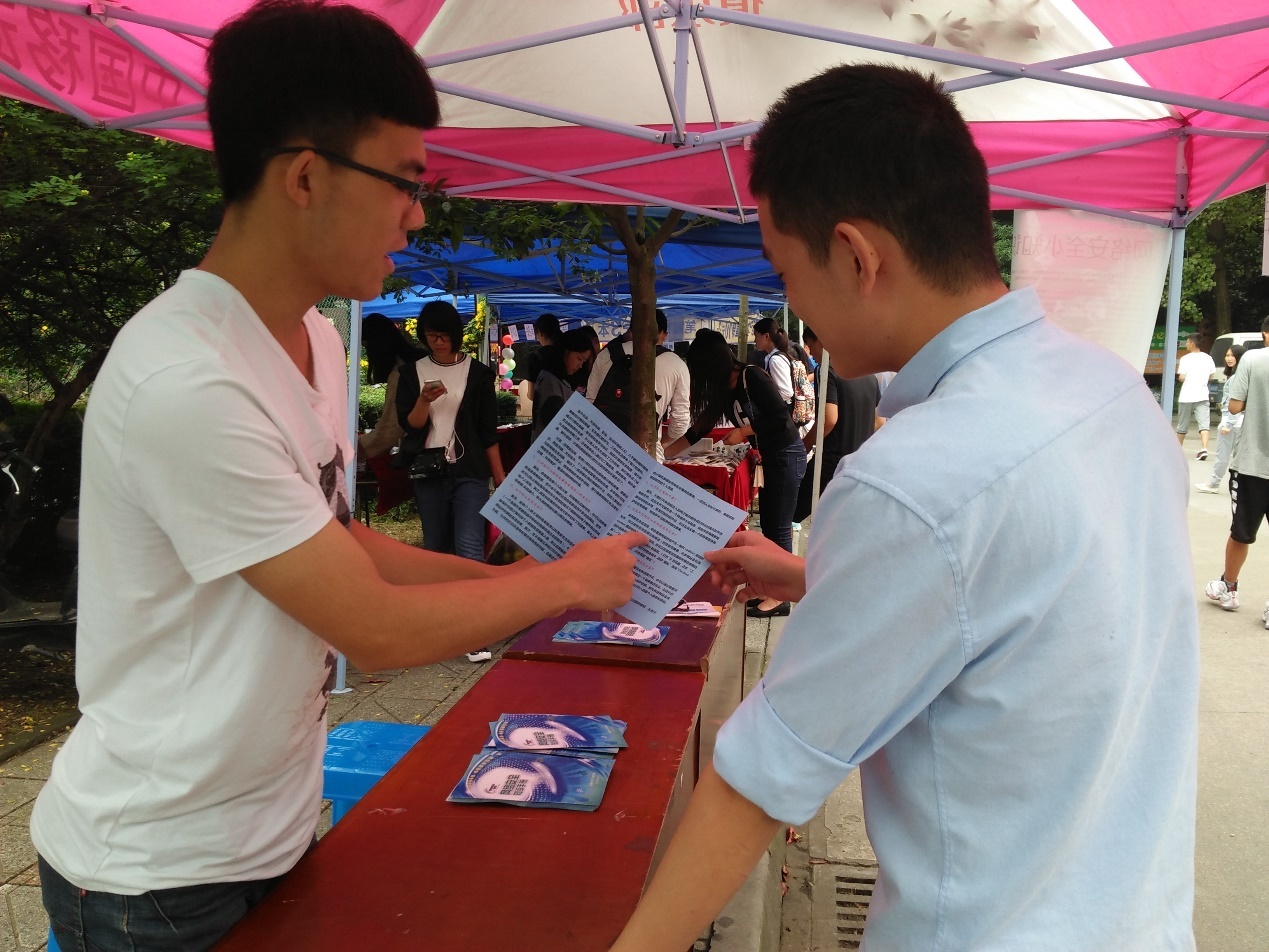 为了使同学们更加了解网络安全,意识到网络安全的重要性,在2016年9月19日到9月25日,信息安全工程学院第十三届分团委学生会在食堂门口进行了摆点宣传活动。出席这次活动的有信息安全工程学院分团委学生会老师和第十三届学生会全体成员。