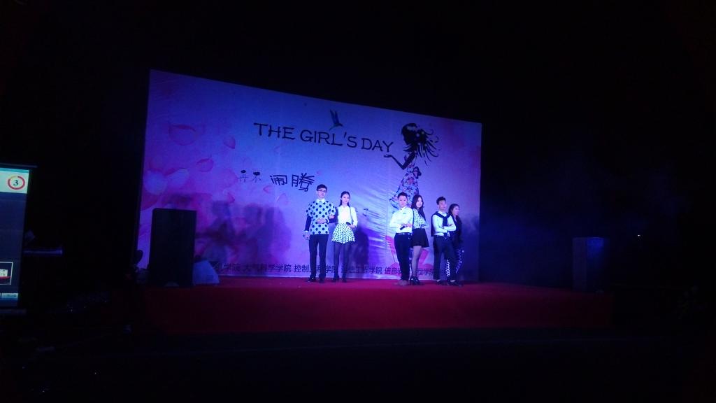 为了发扬女生节传统,丰富校园文化生活,关心女生,关爱女生,构建和谐活力校园。三月六日晚,以计算机学院为主办单位,信息安全工程学院、大气科学学院等六个学院在第一田径场共同举办了女生节晚会。