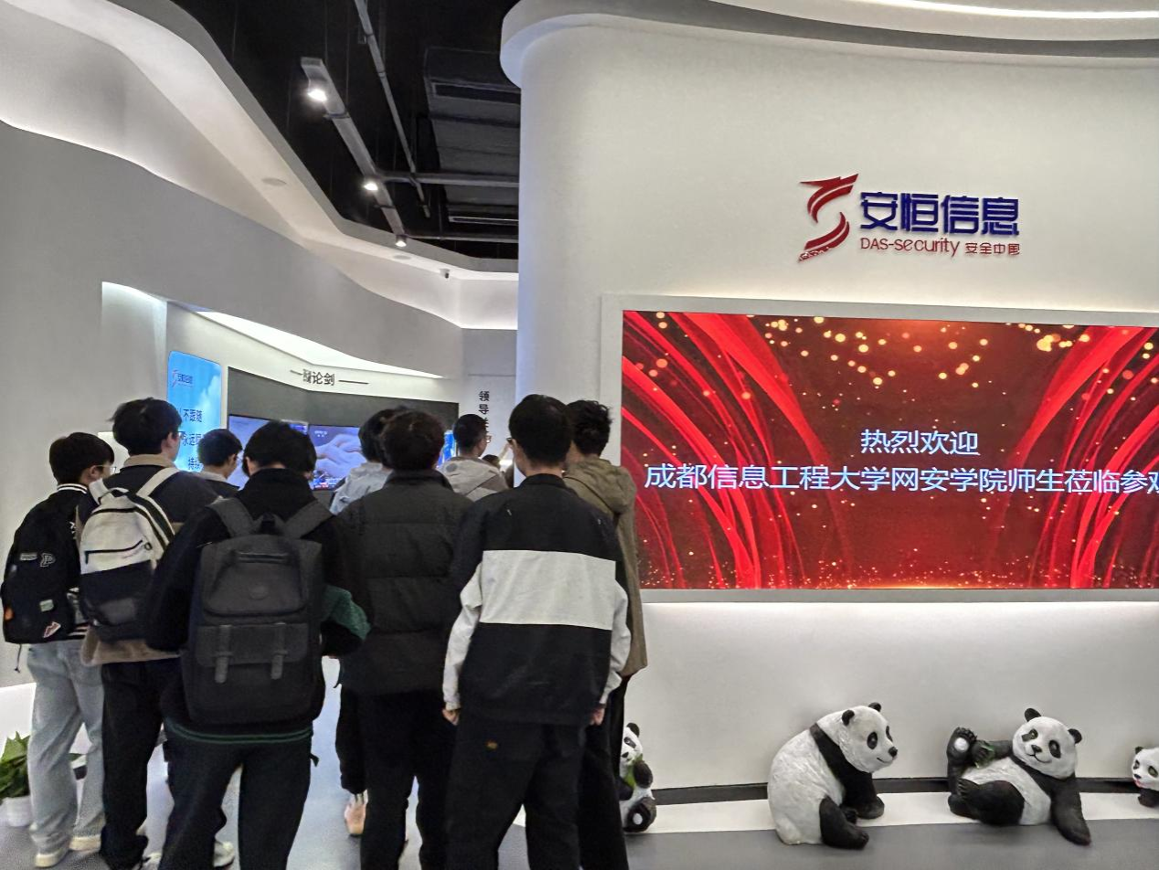 在企业工作人员的带领下,师生们首先参观了公司展厅及研发中心,了解了公司的发展历程、科技研发成果、党建文化以及企业在网络安全等方面参与的社会服务,并进一步了解到了行业的最新技术趋势和前沿应用场景。