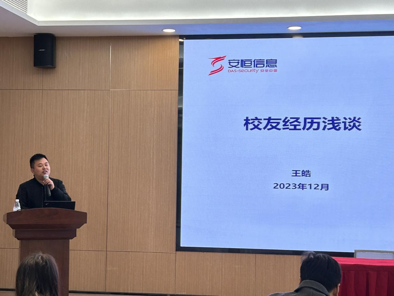 签约仪式之后,公司营销中心四川办副主任王皓(08级信息安全专业校友)为在座的师生们分享了自己的求学和职业发展经历,激励学生们勇敢追求梦想,不仅要重视专业学习,在校期间更要积极参加学生活动,增长人际交往能力,探索多元化的职业发展路径,不断努力拼搏,勇于创新,敢于实践。随后同学们积极提问,向学长提出关于学习、求职和行业发展等问题,并得到耐心细致的解答。