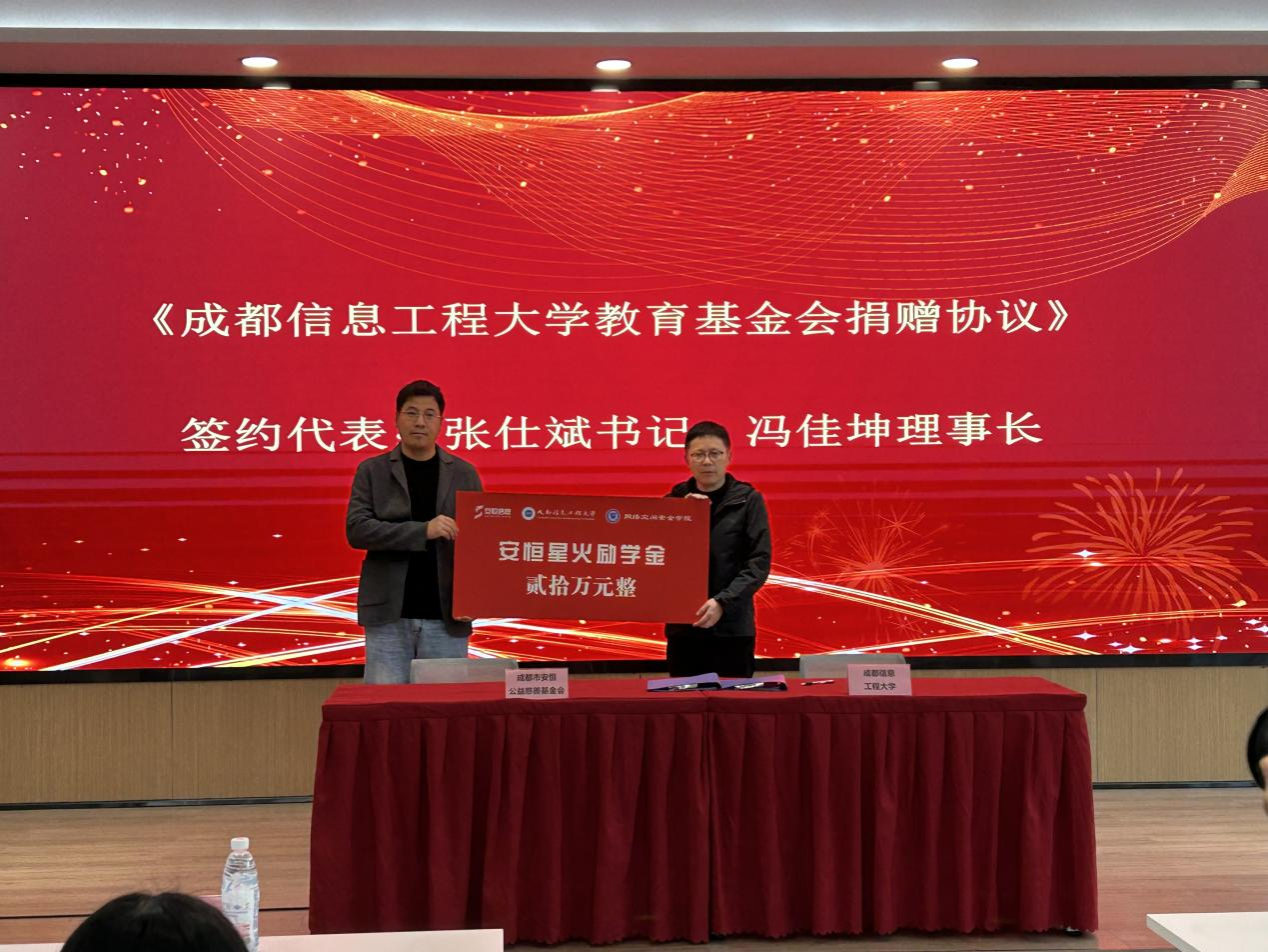成都市安恒公益慈善基金会理事长冯佳坤在致辞中表示,安恒星火”励学金由成都市安恒公益慈善基金会出资设立,自2021年起开展奖优帮困助学,计划每年资助在校在籍学生,鼓励学生勤奋学习、努力进取,奖励资助学院品学兼优的学生完成学业。